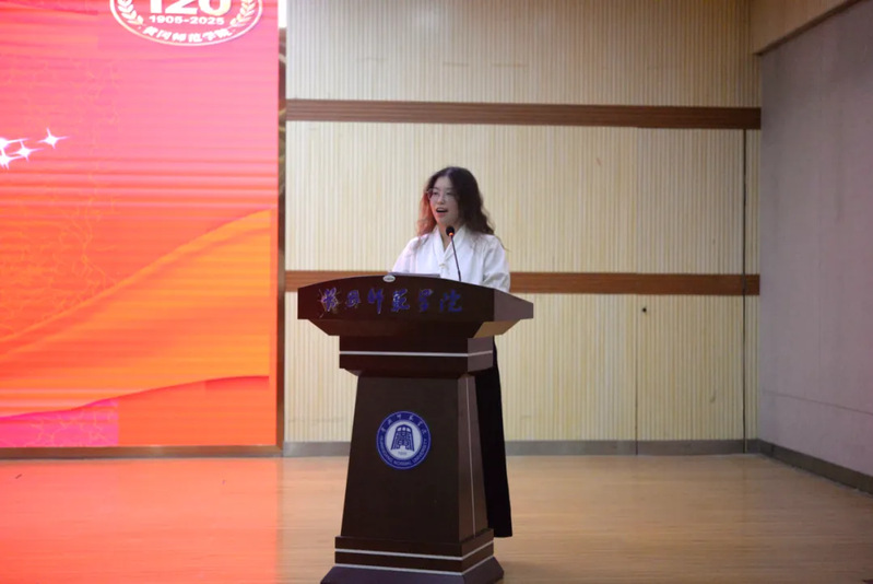 新生代表工商管理2502班王小婕表示,大学是人生新篇章的开端,同学们应主动完成从被动接受到自主规划的转变,学会“自己掌舵”。她提出,要以“厚德、博学、力行、致远”的校训为根本指引,在师友的陪伴与支持下,勇敢探索,勤于实践,共同度过充实而精彩的大学时光。
