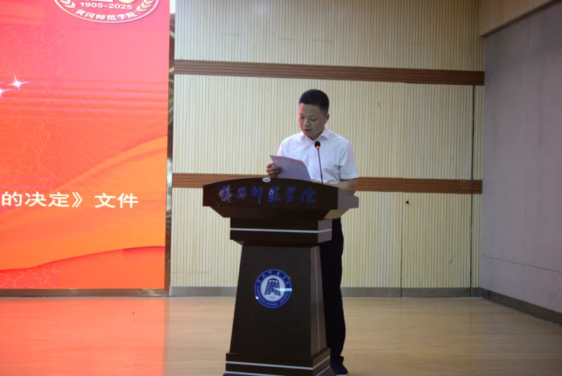 副院长周业旺教授宣读《关于表彰商学院2024年度魅力学子的决定》《关于表彰商学院2024-2025学年团委学生会优秀学生干部的决定》。
