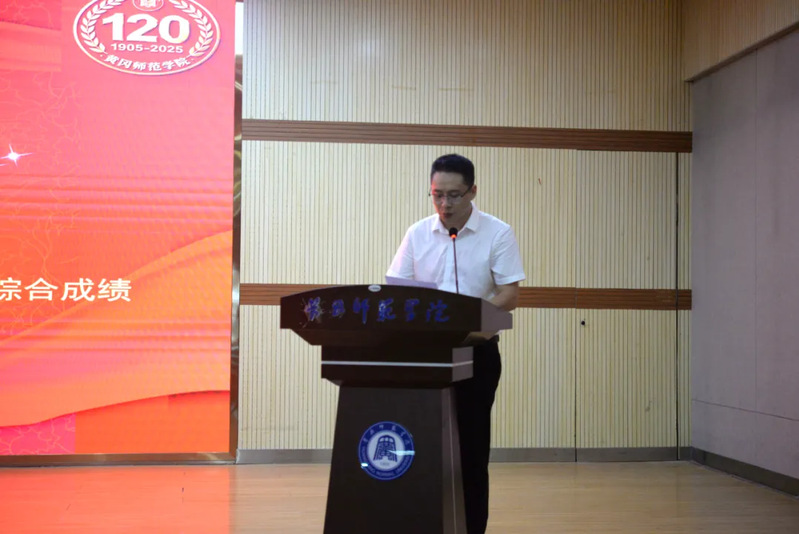 副院长马迎霜教授宣读《关于表彰商学院2024-2025学年同年级同专业学业成绩和综合成绩均位列前10%同学的决定》。