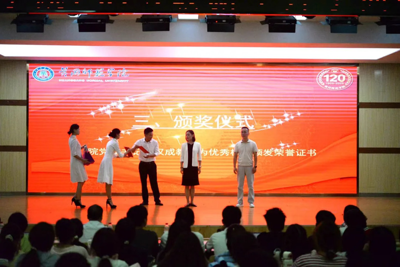 院党委书记刘汉成教授为优秀校友颁发荣誉证书和学校文创纪念品。