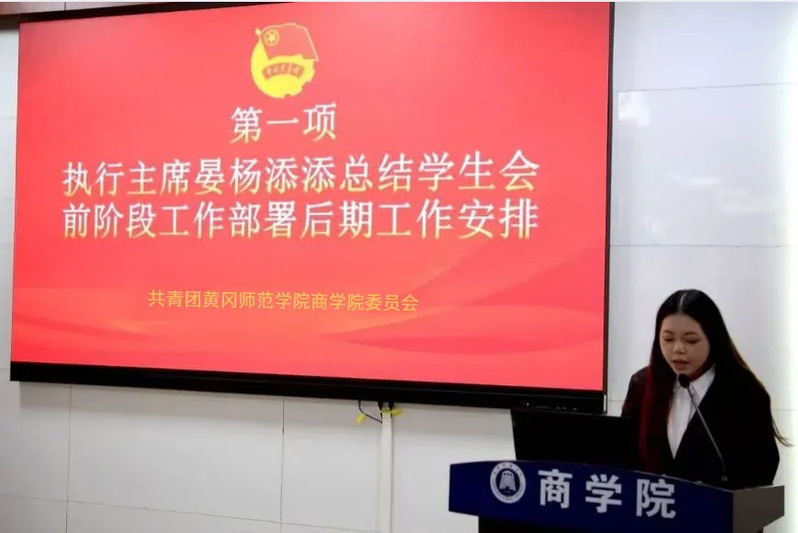 执行主席晏杨添添对学生会各部门前阶段工作进行总结,并对下一阶段工作进行部署,表示后续将进一步优化工作流程,严格履行职责,持续夯实组织基础,扎实推动学生工作更上一层楼。