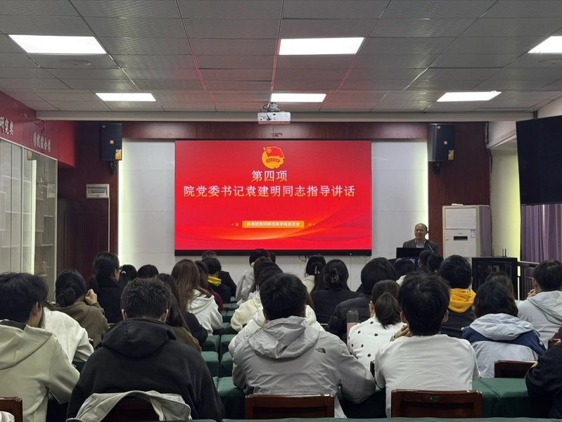 院党委书记袁建明饱含深情的回顾了商学院从小到大、从弱到强的发展历程,他指出,学院历来都非常重视学生工作,并且学生工作有好的基础、好的传统,希望大家要有冲锋、陷阵、夺旗的决心,一如既往的用心、用情、用力做好各项学生工作。他要求,学生工作一是要立足“高”标准。政治站位要高、组织水平要高、活动质量要高、育人成效要高,始终要有“商院最棒”的底气和自信。二是要贯彻“严”要求。考勤管理、上课纪律、宿舍查寝、课外活动、网络舆情等各个工作都要从严管理,全面展现大学生良好的精神风貌。三是要聚焦“实”成效。坚持以身作则,实事求是,真抓实干,着力提升各项活动质量,打造品牌项目,同时确保安全底线。他希望,全体学生干部一是要加强学习。深入领会党的二十届四中全会精神,善于总结学生管理工作经验,在学习、生活、工作上用实际行动作出表率,干出成绩。二是要提升能力。大家要心中有责、眼中有事,勇于担当,在实践中磨砺自己,学中干、干中学,多学多干,让自己不断成长进步,不断提升履职能力。三是要团结协作。要善于凝聚团队力量,通力合作,互相支持,把各项工作想细做实,不断提升服务效能,积极带动班级、宿舍同学共同争先创优。他相信在大家的共同努力下,商学院的学生工作核心竞争力、凝聚力、美誉度一定会更强、更大、更好。