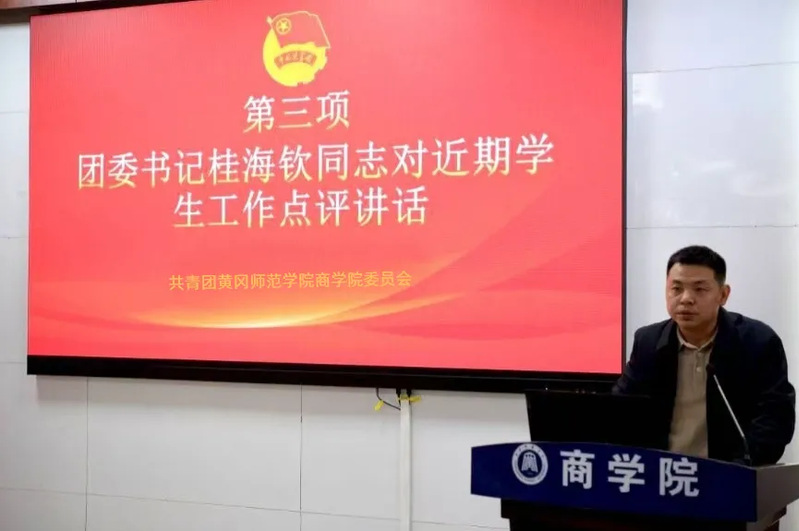 团委书记桂海钦对团委学生会近期工作进行了点评,充分肯定了团委学生会前期工作成效,同时提出后期要加强部门协作、深化思想引领、创新工作方法,希望学生干部继续发挥表率作用,脚踏实地,求真务实,开拓创新,切实推动商学院学生工作高质量发展。