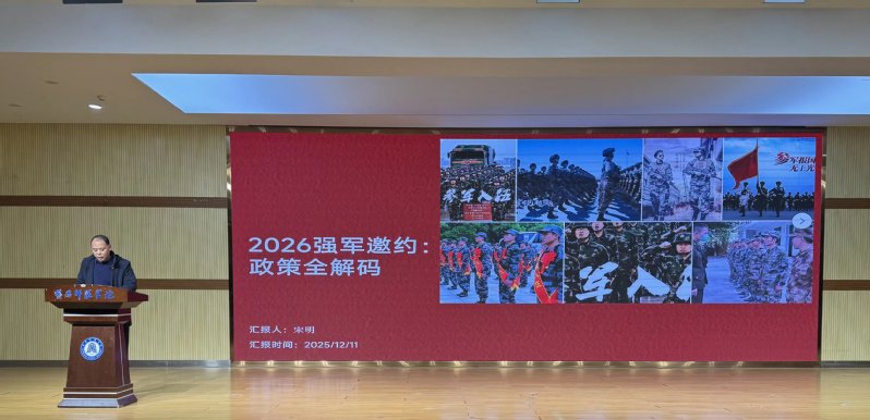 此次征兵宣讲大会,不仅是爱国主义教育的生动实践,更是政策解读与经验交流的重要平台。它不仅帮助学生厘清了参军疑虑,更点燃了青年一代投身国防、报效祖国的热血豪情,让青春在军营中绽放绚丽之花。