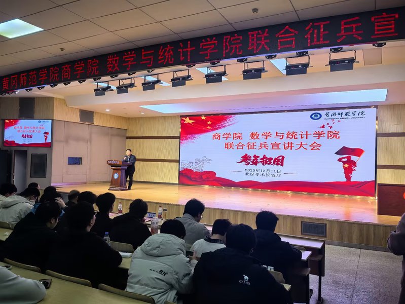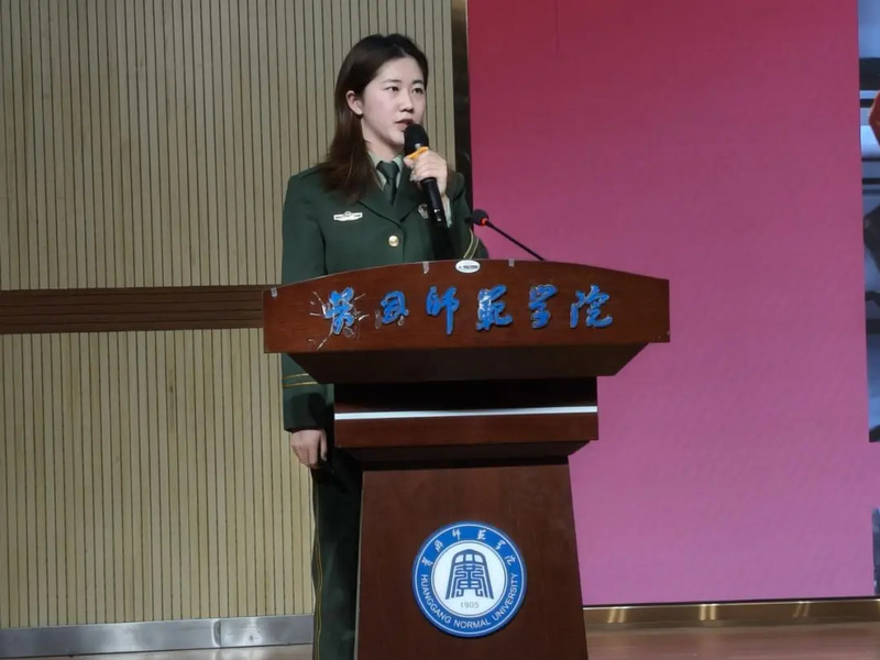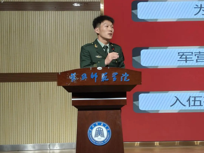 随后,数统学院党委书记黄小花发表动员讲话。她深情回顾了两院深厚的友谊和合作历程,向大家深情寄语三句期许:第一,青春有千万种模样,但身穿戎装、手握钢枪的样子,一定是其中最挺拔、最无悔的一种;第二,今天的宣讲会,不仅是政策的宣讲,更是一场青春的对话,希望大家认真听、仔细想、用心思考;第三,衷心期待能在学校的欢送会上,看到大家身着戎装、意气风发的英姿,那将是黄师校园里最美的风景,也必将是青春岁月中最亮的底色!