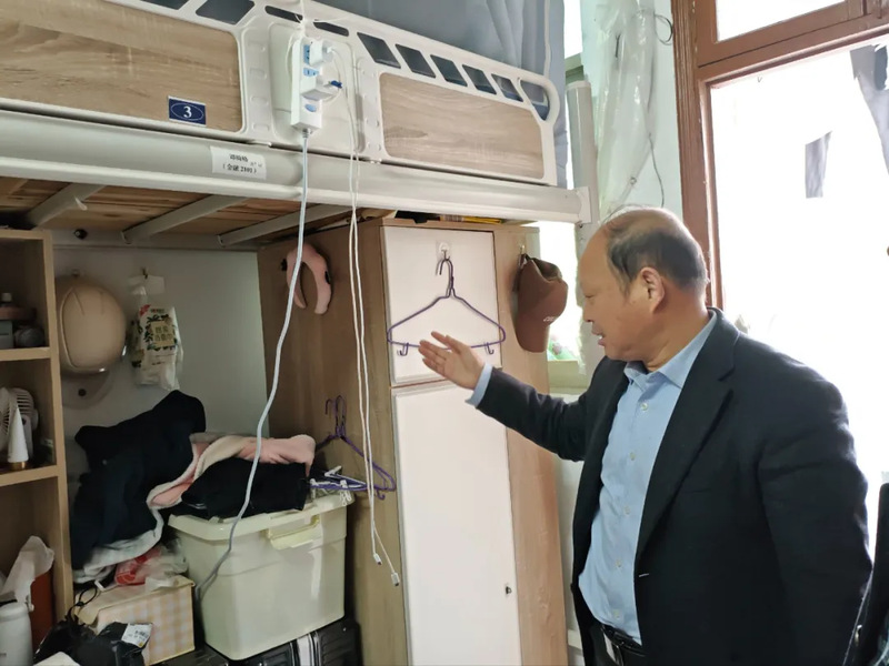 走访期间,学院领导与学生们亲切交流,详细询问学生的学习生活情况和实际需求,叮嘱同学们要提高安全防范意识,牢固树立“安全第一、生命至上”的理念,严格遵守宿舍安全管理规定,自觉抵制违规电器,养成良好的生活习惯。针对检查中发现的部分宿舍物品摆放杂乱、插线板使用不规范等问题,院领导当场提出整改要求,明确整改时限,确保安全隐患及时清零。